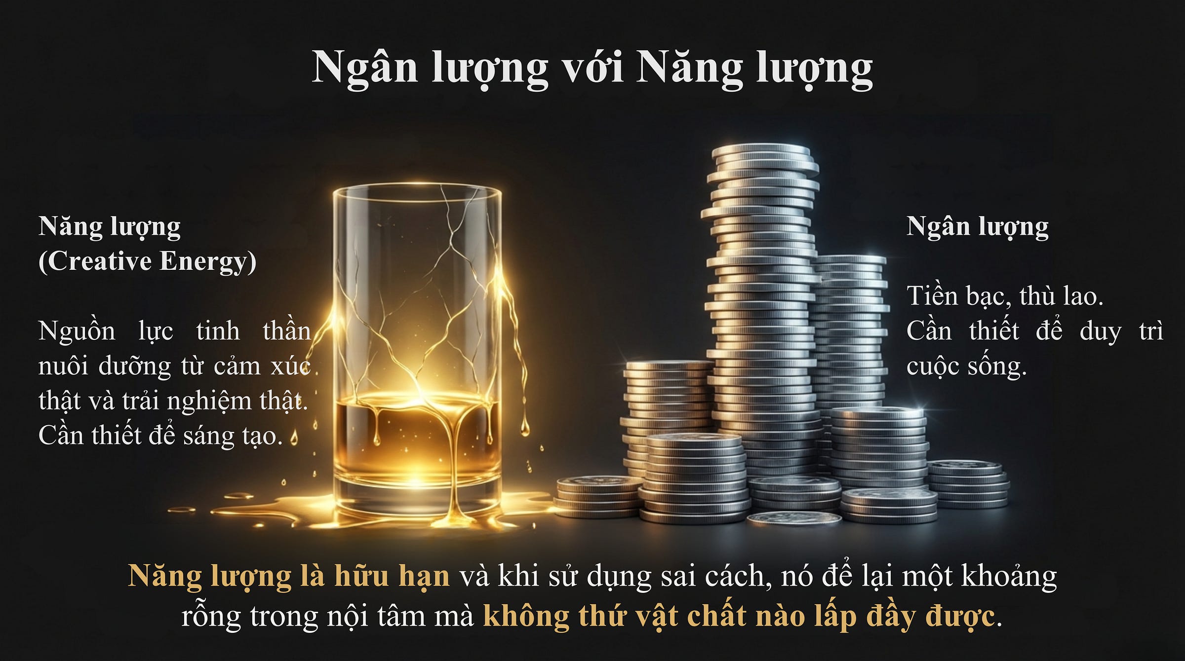 Nhưng có một sự thật mà ít ai dám nói: năng lượng là hữu hạn và khi sử dụng sai cách, nó để lại một khoảng rỗng trong nội tâm mà không thứ vật chất nào lấp đầy được.