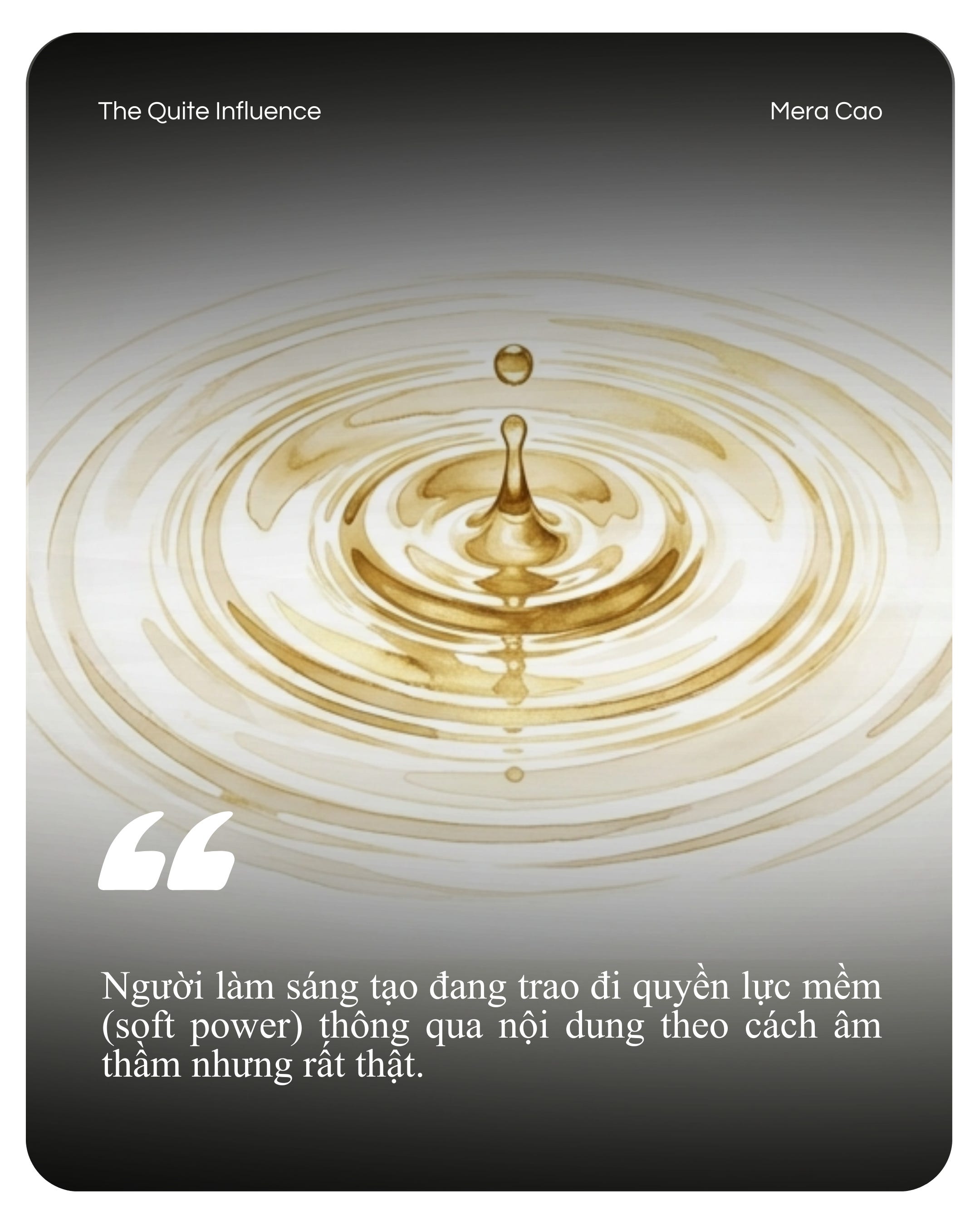 Tôi chọn triết lý “Quiet Influence”, không phải vì tôi ngại spotlight, mà vì tôi biết: có những giá trị cần thời gian để thấm, có những tác động không cần ồn ào để bền vững.