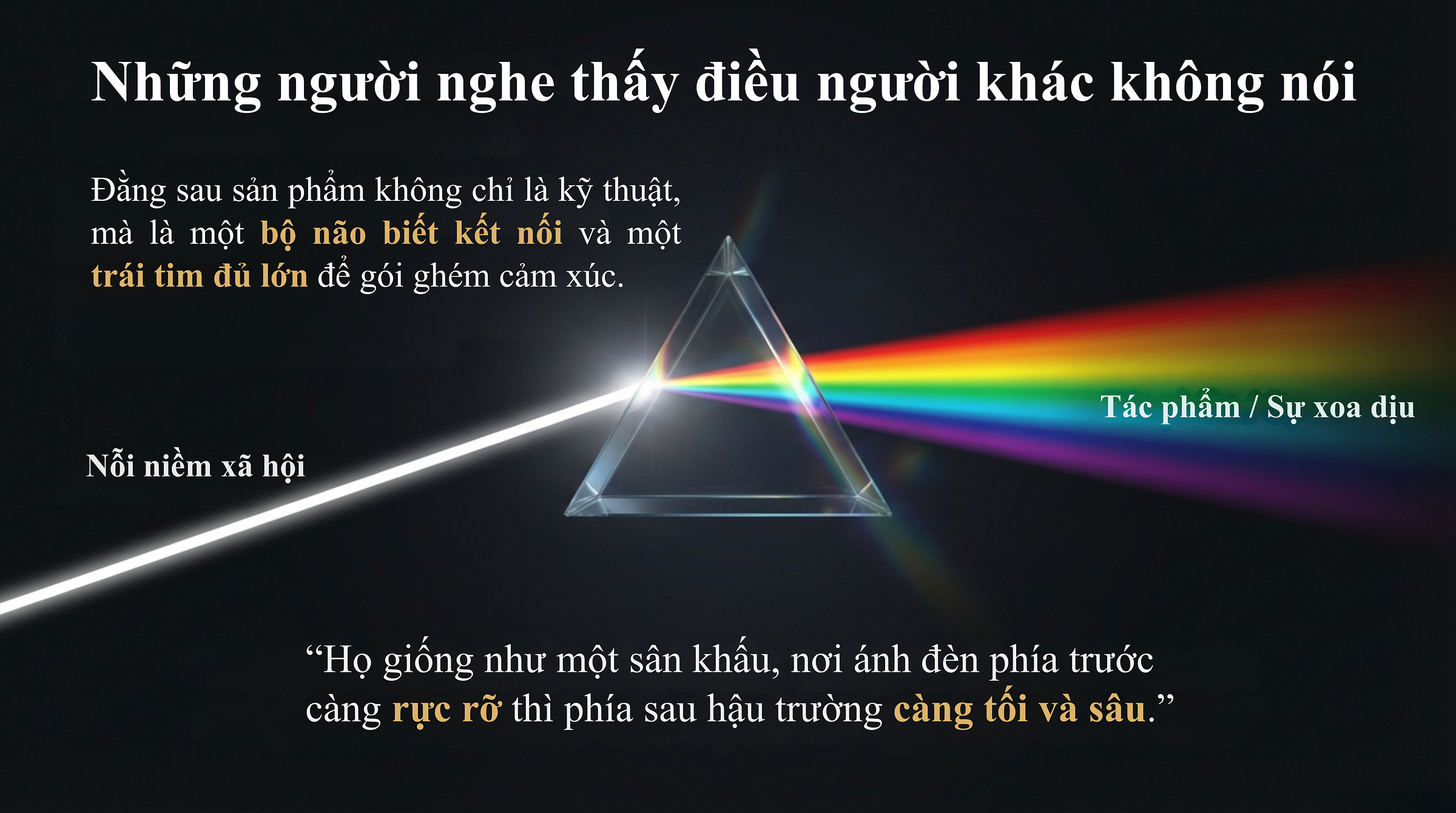 Người làm sáng tạo là cầu nối giữa nỗi niềm cá nhân và tiếng nói tập thể. Nhưng cũng chính vì vậy, họ thuộc một trong những nhóm người mang theo nhiều cảm xúc và dễ tổn thương.